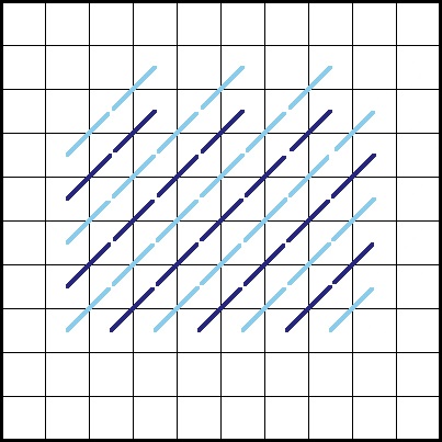 Diagonal stitches are stitches that are worked, yes you guessed it, diagonally (at a slant). It is especially