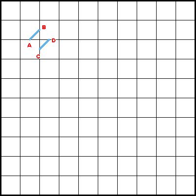 Bring the needle up at A, move up and to the right over one canvas intersections, bring the needle down at B. Bring the needle up at C (this is actually the same canvas hole as A), move up and to the right over one canvas intersection, bring the needle down at D (again, this is the same canvas hole as B). Basically, you will be working two stitches into up and over the same canvas intersection. Now, continue on to Diagram 2...