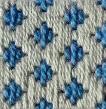 This stitch is identicle to the hungarian stitch, except for the extra straight stitches that are added to form a larger diamond shape.