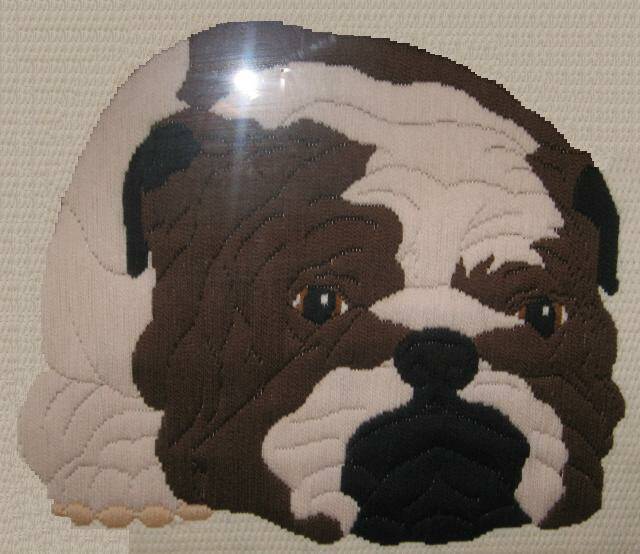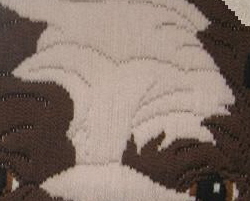 This image shows a close-up of Basil, The Bulldog (full image is below). You can see from this image how the long stitch is worked from detailed line to detailed line. These detailed lines have been drawn onto the canvas and are simple to follow. Where one long stitch ends and another long stitch begins, the details of the image begin to form - in this case, the wrinkles in Basils furry coat.